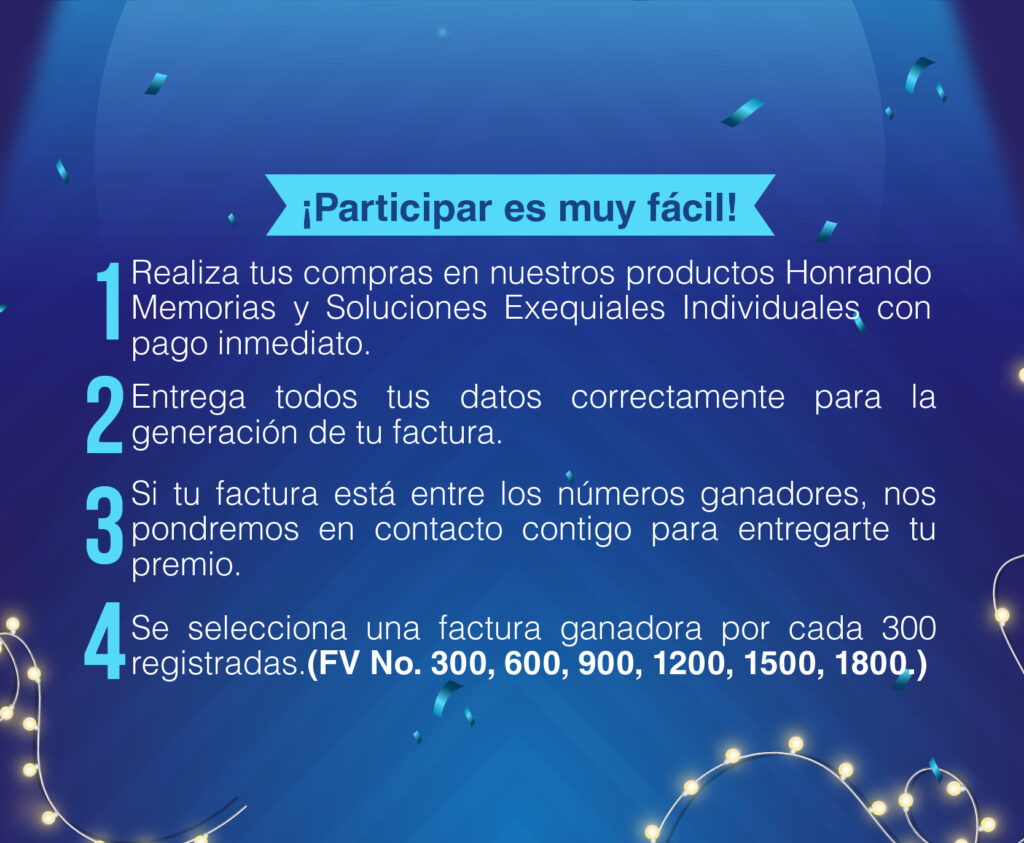 La asignación de los premios se realizará con base en el número de la factura generada al momento de la compra. En consecuencia, se entregarán los siguientes obsequios a los clientes cuyas facturas coincidan con los números indicados: